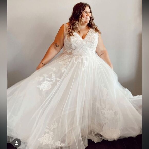 Stella York 7126 Plus Size tulle lace A-line wedding dress, size 26