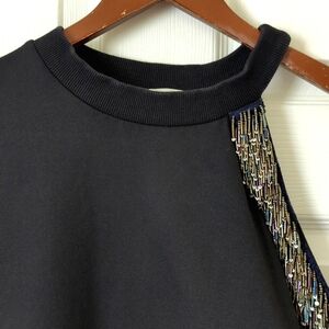 Stellah Bead Embellished Cutout Shoulder Pullover Crewneck Sweatshirt Black M