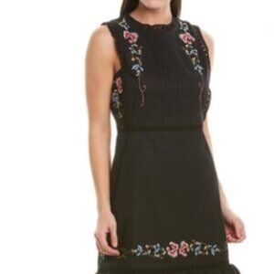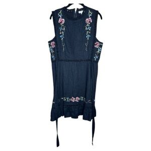 Stellah embroidered dress, black sleeveless embroidered dress, Stellah lace trim dress, floral embroidery cotton linen dress, Stellah ruffle hem dress, Stellah black dress size large, boho chic embroidered dress, Stellah sleeveless A-line dress, cotton linen embroidered dress, boho, chic, embroidered