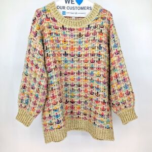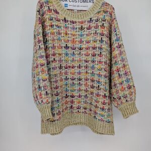 Stay cozy and stylish with this multicolor knit sweater. Perfect for any casual outing.