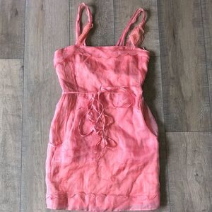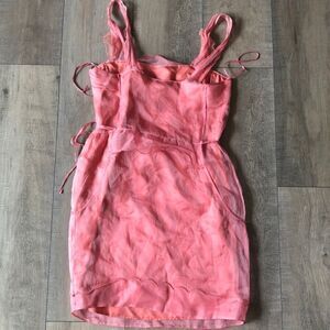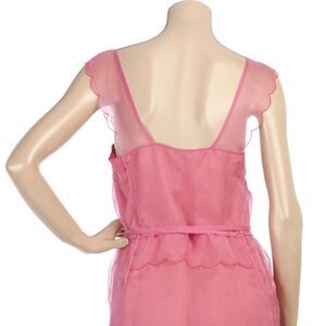 Coral silk organza scallop trim dress by Stella McCartney. Dress has two this straps with organza floral details. Side zip and fastening. Two front pockets with thin self ties. Dress is fully lined. 100% Silk . Dry Clean Only. Size 42 corresponds to US 8-10. Please see measurements below and measure yourself to make sure it fits.