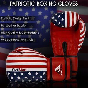 The Stellman Gladiator Boxing Gloves featuring the US Flag design combine patriotic flair with premium performance. Made for fighters who demand durability and protection, these gloves offer a secure fit and superior padding to safeguard your hands and wrists. The bold US Flag graphic adds a unique, patriotic touch, making these gloves stand out in the ring. Whether you're training, sparring, or hitting the bag, the Gladiator gloves deliver the support you need to fight with confidence.