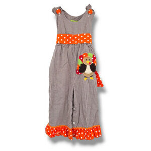 StellyBelly Vintage Baby Girl Fall Thanksgiving Turkey Ruffle Jumpsuit Size 18M