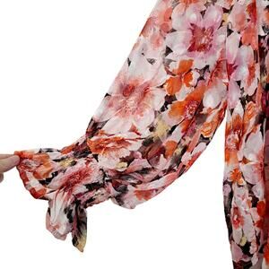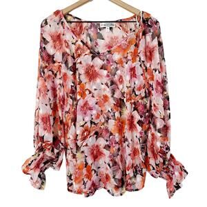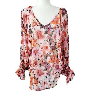 Stem & Vine long sleeve semi sheer lightweight top. Floral print. Elastic wrists.