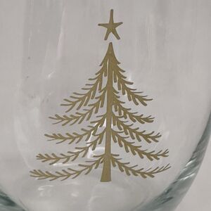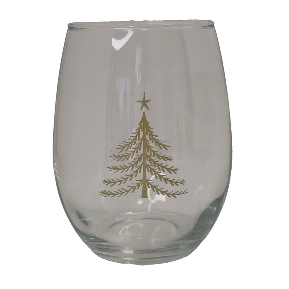 Stemless Wine Glass Gold Christmas Tree w/Star Holiday Season 16 oz Single