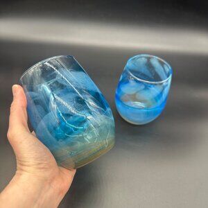 Stemless Wine Glasses Abstract Beach Blue Sandy Brown Nautical Cups Tumblers