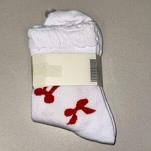 Stems 1 Pair White Red Bowtie Print Cotton Blend Stretch Knit Luxury Socks
