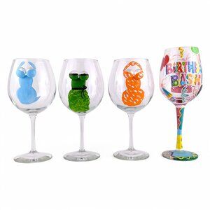 Stemware Mixed Lot of 4 Wine Glasses Lolita Birthday Bash