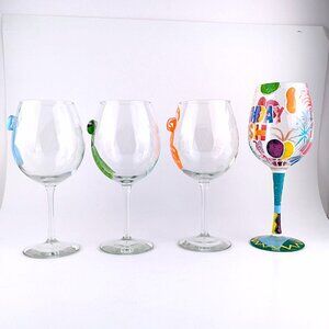 Stemware Mixed Lot of 4 Wine Glasses Lolita Birthday Bash Handpainted Swim Party