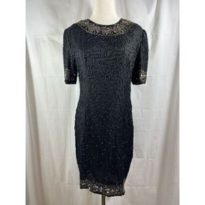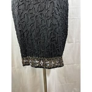 Stenay Black knee sheath dress gown gold bead pearl sequin size P6 VTG
