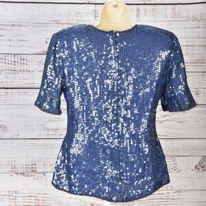 Stenay Midnight Blue Sequin and Beaded Top Size S