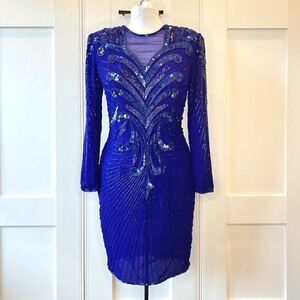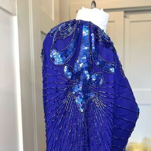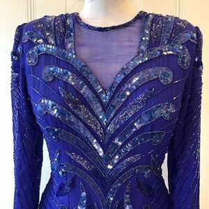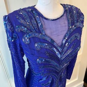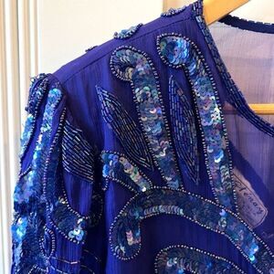Stenay Paris Vintage Blue Silk Heavily Beaded Embellished Cocktail Dress 6