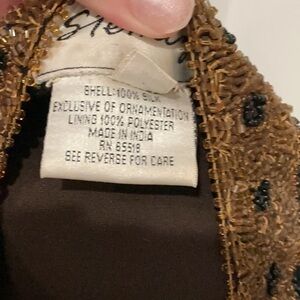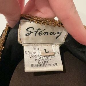 Stenay Sequins Black Gold Hook & Eye Top Jacket 100% Silk Glam Bling 90s Size L
