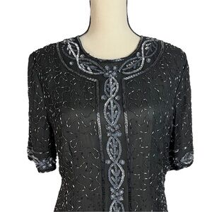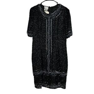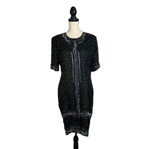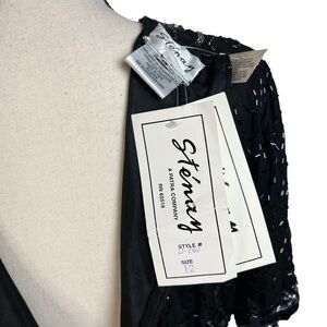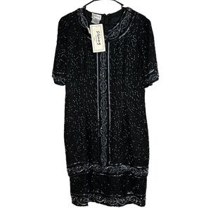 Stenay Silk Beaded Dress Black Short Sleeve Party Iridescent VINTAGE DEADSTOCK