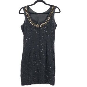 Stenay Silk Beaded Dress Womens 8 Black Flapper Evening Wear Vintage 20's Style