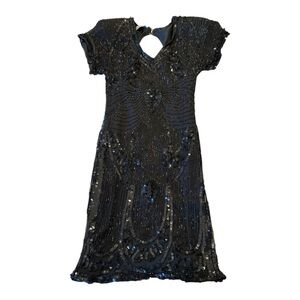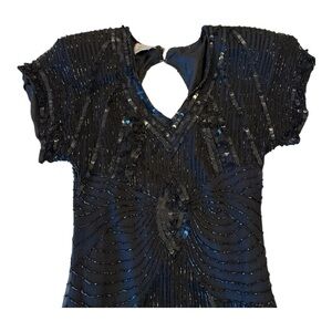 Stenay Vintage 80s Black Silk Beaded Sequin Midi Cocktail Party Small Gatsby