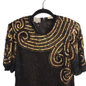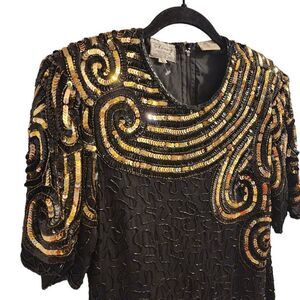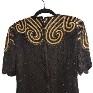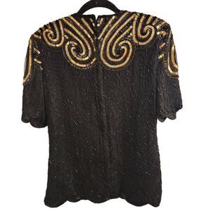 Stenay Vintage Silk Beaded Black Gold Top Size Small
