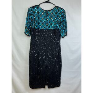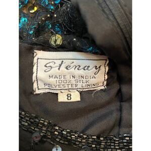 Stenay Women's Size 8 Blue/Black 100% Silk Sequin Cocktail Dress Made in India