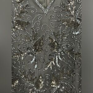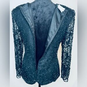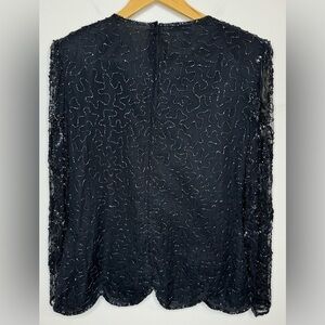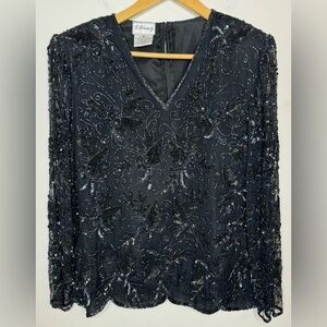 Stenay Women’s Vintage Black Beaded V-Neck Blouse Size M