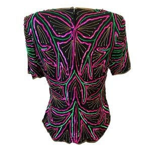 Stenay Womens Vintage Pink And Green Evening Top Size Large 1980s Sequins
