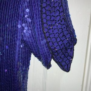 Stenay beaded silk vintage top Sz M sequins V neck back zip shoulder pads