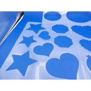 This set of 3 classic clear plastic stencils by an unknown brand is perfect for all genders. Each stencil measures 12x9 inches and features various shapes including ovals, hearts, stars, and hexagons.