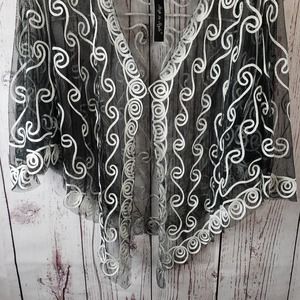 Step In Style Shawl Wrap Womens Size Large Sheer Embroidered Black