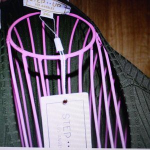Women's Step Up cold shoulder fit & flare dress, size 3XL. Olive green ribbed knit material. Short sleeves. New with tags. Approximate Measurements: