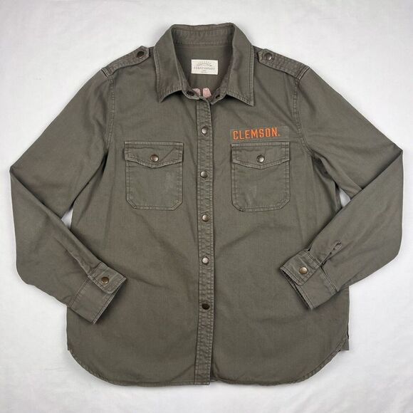 Stepforward Large Clemson Embroidered 100% Cotton Army Green Long Sleeve Top