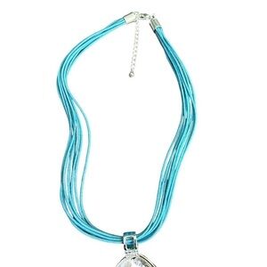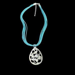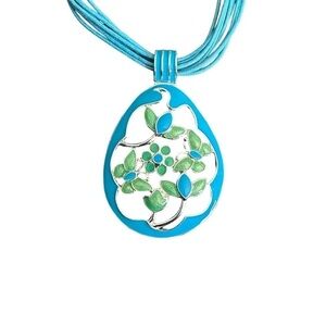 Stephan & Co. turquoise blue and green medal pendant necklace with butterflies and flowers on the pendant and coated multi string necklace with silver hardware and lobster claw closure. The necklace length is adjustable. Length as show in photos is 6” with an aprox. 2” adjustability to make longer. The pendant is aprox. 2 1/2” . This is NWOT ( new without tags ) on trend colors for this year and a stunning but not over the top statement piece.
