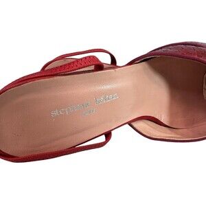 This is a pair of Stephane Kelian of Paris, red leather basket weave slingback kitten heel pumps, women's size 9.5 Great condition without flaws. Signs of wear limited to the leather soles. Made in France. Measurements;