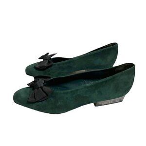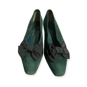 Stephane Kelian Vintage Green Suede Pumps with Bow, Size 8 US,