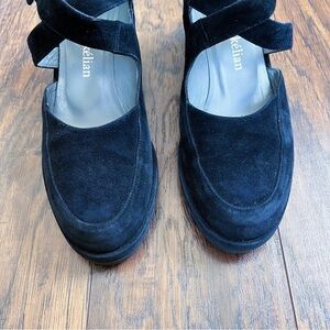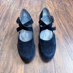 Stephane Kelian • black platform shoes criss cross strap mary jane chunky suede
