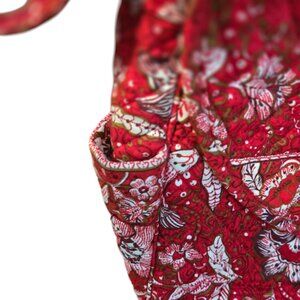 This Stephanie Dawn Shoulder Bag is a stunning travel bag perfect for any occasion. The bag features a beautiful floral pattern in a bold red color, making it an ideal choice for school or a weekend away. The bag is made from high-quality cotton fabric and has an exterior material also made of cotton, giving it a vintage look. The bag has an adjustable strap and a hook and loop closure, providing easy access to your belongings. With a size of 17 inches in width and 12 inches in height, this large duffle is perfect for carrying all your essentials. Whether you're a student or a traveler, this bag is a must-have. Get your hands on the Stephanie Dawn Shoulder Bag and make a bold statement on your next adventure.