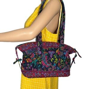 Stephanie Dawn Shoulder Bag Zippered Tote Plum Floral Purse Preppy Boho 14x8x4”