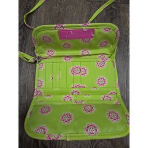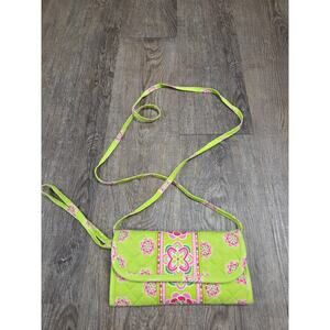 Stephanie Dawn Vintage Bright Neon Green Hot Pink Fabric Crossbody Purse Wallet