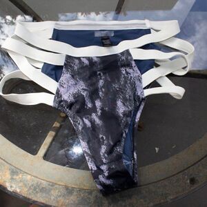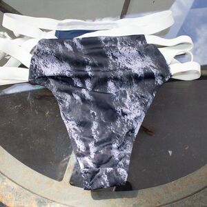 Stephanie High Waist Bottom in Marbled Charcoal $83 Bandits Swimwear Swim Bottoms Strappy Bandage Women L. NWOT. See photos.