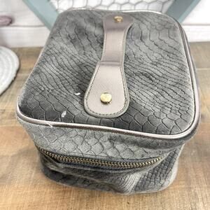 Stephanie Johnson Gray Velour Medium Cosmetic Makeup Bag