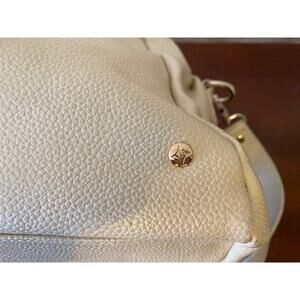 Elevate your accessory collection with the Stephanie Johnson Leather Shoulder Bag, a perfect blend of elegance and functionality for the modern woman. Crafted from high-quality leather in a versatile beige/Ivory hue, this medium-sized handbag complements any outfit with a touch of sophistication. The bag features a spacious interior lined in a chic blue color, providing ample room for your essentials. Silver hardware accents add a subtle contrast, while the matching beige/ivory strap ensures comfort and ease of carrying. Whether it's for daily use or a special occasion, this handbag is a timeless addition to your wardrobe. Please view all pics carefully and let me know if you have any questions Please view all pics carefully and let me know if you have any questions. All items come from a smoke and pet free home.
