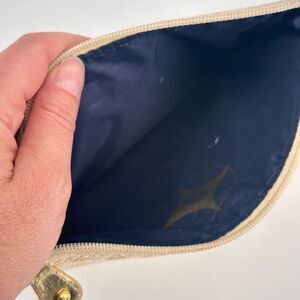 Stephanie Johnson Palm Desert Metallic Gold Cosmetic Makeup Bag zebra stripes