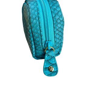 Stephanie Johnson Zipper Makeup Bag Jewelry Case Turquoise Faux Reptile 6-Inch