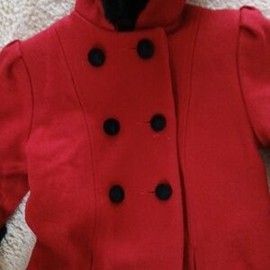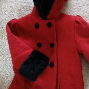 Stephanie Matthew's Hooded Girl's Red Wool Double Breasted Coat Size 2T