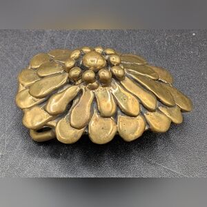 Stephen Burr Signed Brass Brutalist Floral Belt Buckle, 1970s Brass, 1" Opening