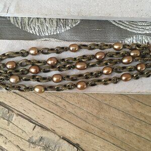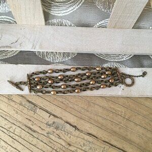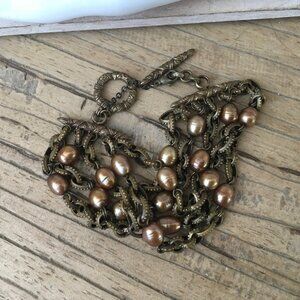 Stephen Dweck 5 Strand Bronze Link Bracelet with Gold Pearls