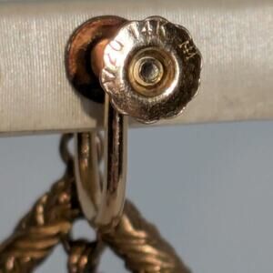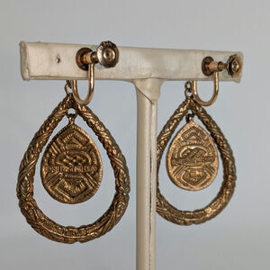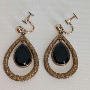 Stephen DWECK black onyx etched bronze gold teardrop drop earrings with gold filled screw clip! Very good condition!