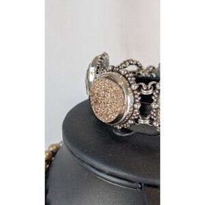 The necklace and the bracelet both have toggle closures, and the bracelet also has a safety chain. These are substantial pieces of jewelry with a considerable combined weight of 213 grams. Grey velvet jewelry case is included.