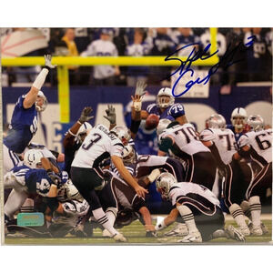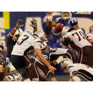 This 8x10 photo captures the momentous occasion of Stephen Gostkowski, the talented kicker for the New England Patriots, signing his autograph. The photo is an original, authenticated by Gridiron, and is a must-have for any avid collector. Featuring Gostkowski in his Patriots uniform, kicking during the Super Bowl, this photo is a perfect addition to any sports memorabilia collection. Whether you're a die-hard fan of the NFL or simply appreciate the skill and dedication of this talented athlete, this autographed photo is a true gem. Don't miss out on the opportunity to own a piece of sports history.
