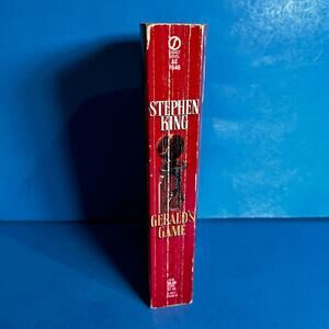 Step into the chilling psychological world of Stephen King’s Gerald’s Game, a #1 National Bestseller that pushes the limits of fear, survival, and the human mind. Originally published in 1992 and adapted into a Netflix film, this paperback is the 1993 First Signet Printing, featuring the original red cover art with the handcuffs illustration and the author photo by Tabitha King on the back.