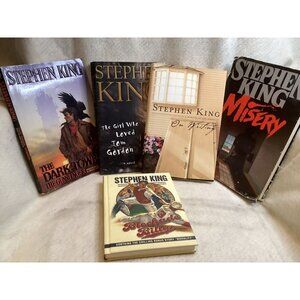This Stephen King collection includes a mix of hardcover and paperback books, featuring "The Dark Tower: The Gunslinger", "Blockade Billy", "On Writing", "Misery", and "The Girl Who Loved Tom Gordon". A comprehensive addition for avid readers and collectors of the horror and thriller genres.