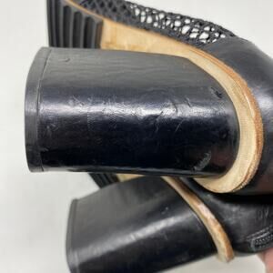 Stephen Venezia Womens 41 US 10.5 Black Ankle Boot Fish Net Block Heels Open Toe